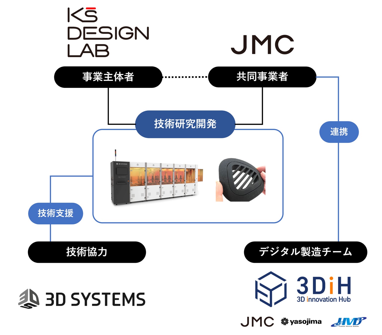 株式会社ケイズデザインラボは、株式会社JMCと企業連携を組み、3DInnovation HUBと株式会社スリーディー・システムズ・ジャパンと技術連携を通じ、ものづくり業界の中小企業のDXを加速させる「3Dプリンターによる小ロット生産」を普及推進するプラットフォーム事業『デジタル製造プログラム』をスタート致します。
